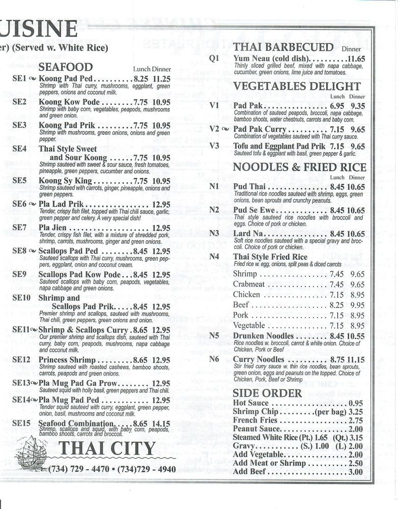 Located in Westland, MI, Thai City offers a unique fusion of Thai and Chinese cuisine in a cozy and welcoming environment. With a range of options for vegetarians and various amenities such as takeout, delivery, and reservations, this restaurant caters to diverse preferences and needs. Customers praise the quick service and friendly staff, highlighting dishes like chicken pad Thai and chicken fried rice as must-tries. The maintenance of food quality post-COVID sets Thai City apart, with popular menu items like C9 and crab Rangoon earning rave reviews. The atmosphere is described as inviting, making it a go-to spot for both locals and visitors. Whether enjoying a meal in the gender-neutral restrooms or outdoor seating area, Thai City promises a satisfying dining experience with generous portions and flavors that don't disappoint.